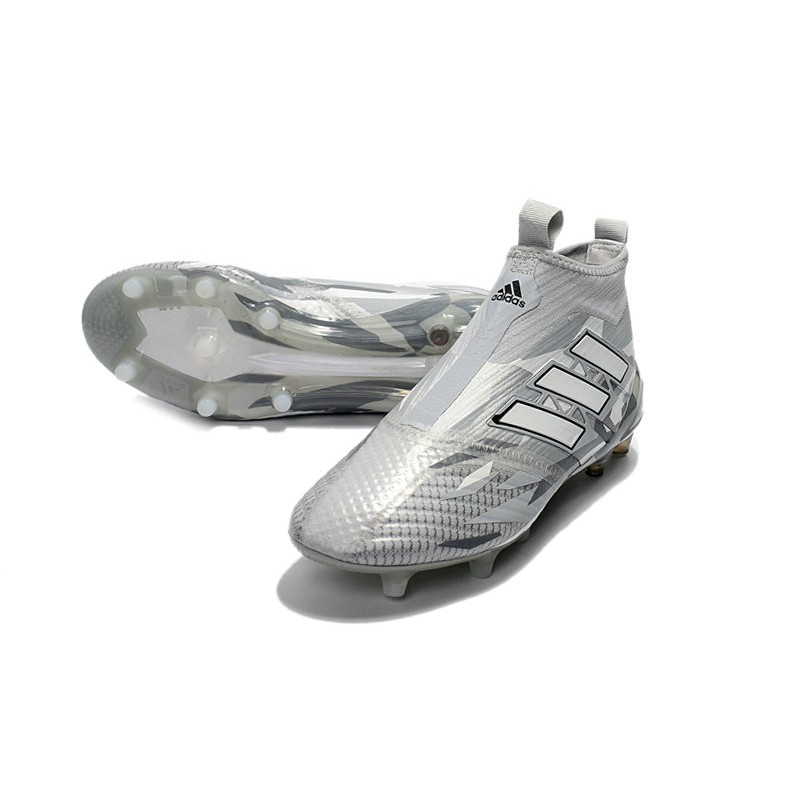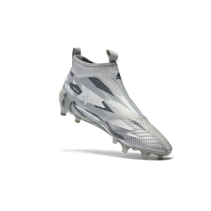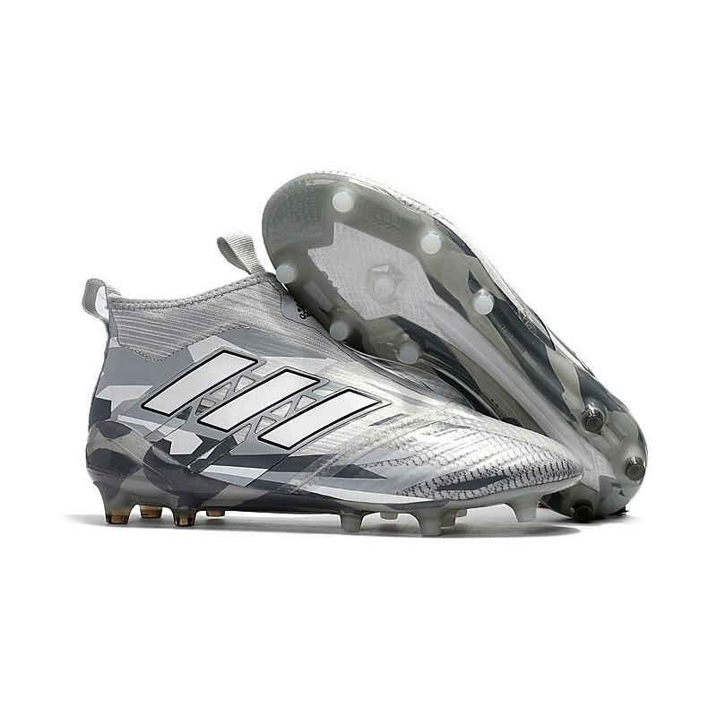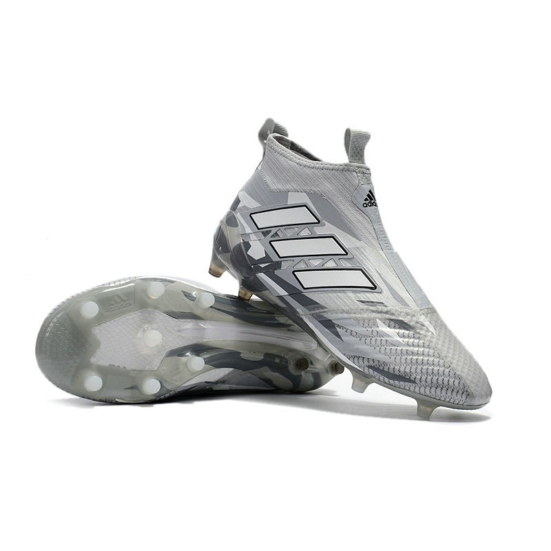 2018 Bota De Fútbol Ace 17+ Purecontrol FG Gris Blanco Negro